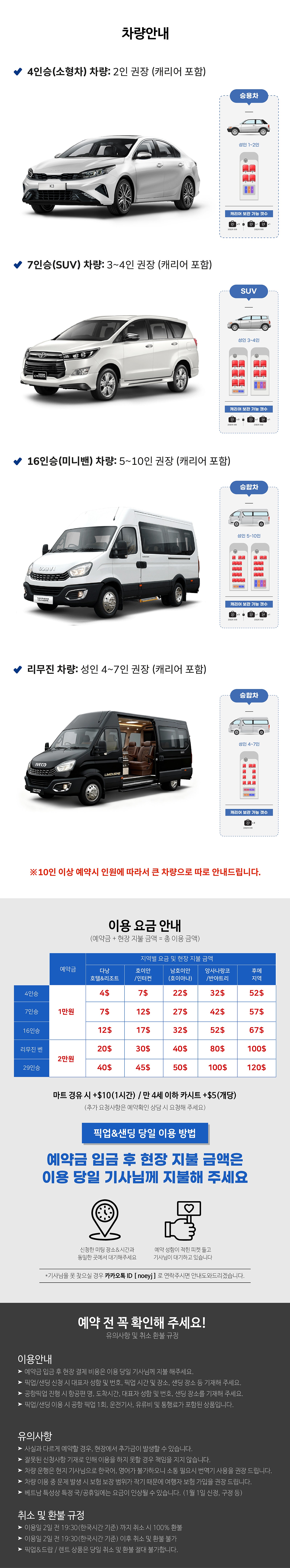 4. 차량 이용 전날 예약 확정서 전달, 차량 일정 종료 후 기사님께 현장지불 완료.